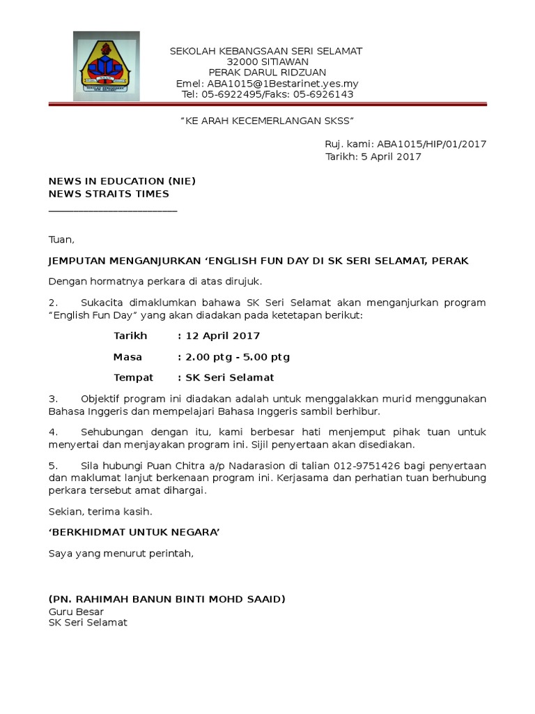 Contoh Kop Surat English Correspondence Qurrotiayuninnaila